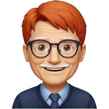 red-haired old man wearing glasses and black-white dress code emoji | AI Emoji Generator