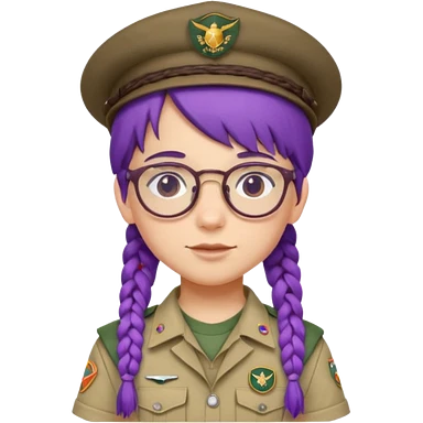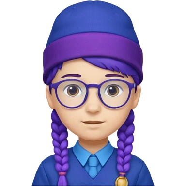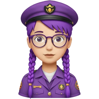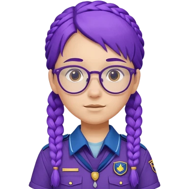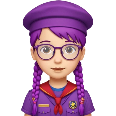 bşue uniform wearing scout kid with braids and glassess with hat purple haired emoji