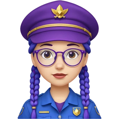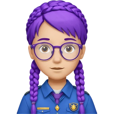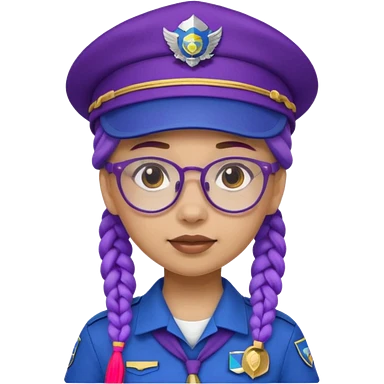blue uniform wearing scout kid with purple braids and glassess with blue hat emoji