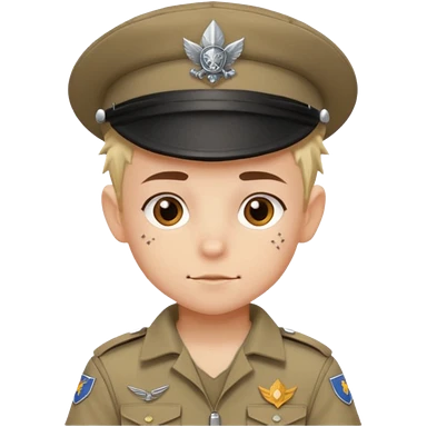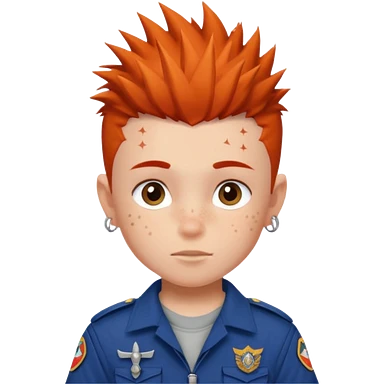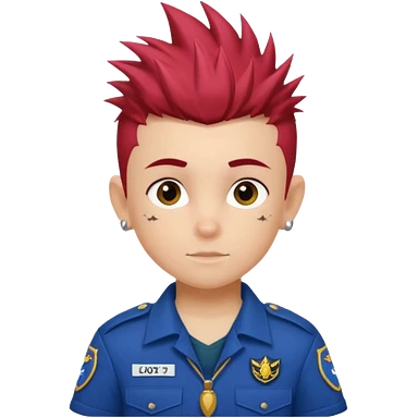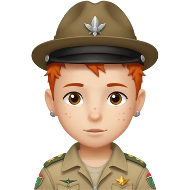 scout boy face tatooes green haired, wearing red uniform with hat emoji