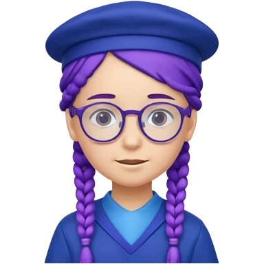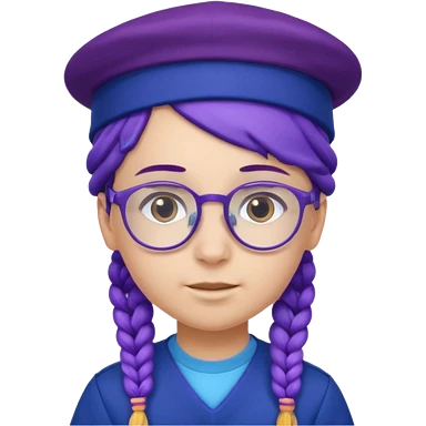 blue uniform wearing scout kid with braids and glassess with hat purple haired emoji