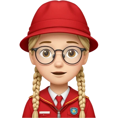 red uniform wearing scout kid with braids and glassess with hat emoji