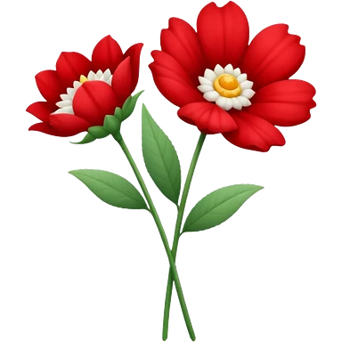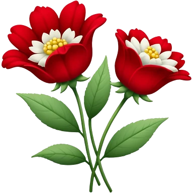 one red flower and one white flower in bouquet with red band emoji