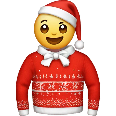 Red Christmas sweater on tan woman with black hair and a beanie emoji