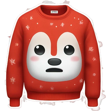 Red christmas sweater with thing 5 written on it with white letters emoji