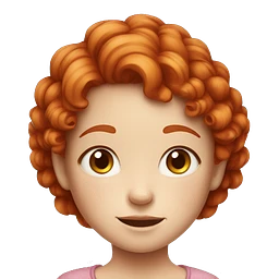 Redhead girl with white skin, blue eyes, hair wavy and freckles emoji
