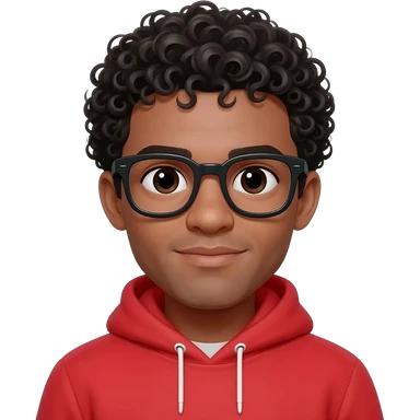 This man with red hoodie on with glasses and Curly Hair. emoji