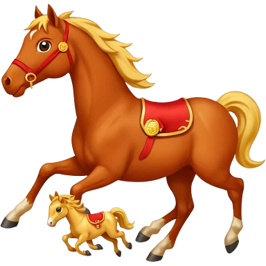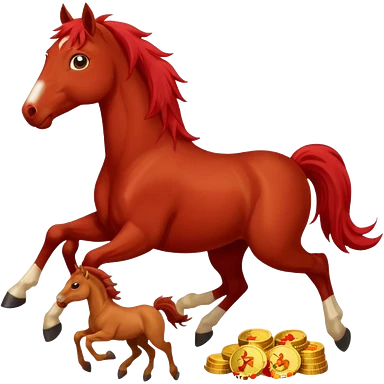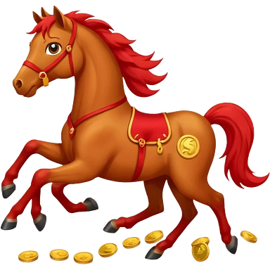 red horse agressive running money on on the saddle emoji | AI Emoji Generator