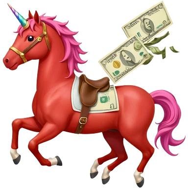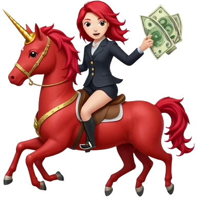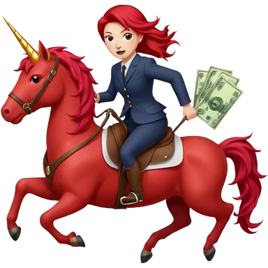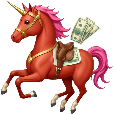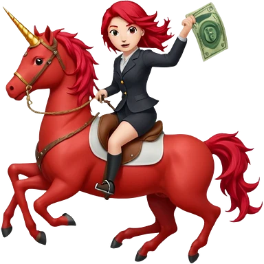 red horse red hair agressive unicorn running money on on the saddle emoji
