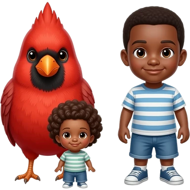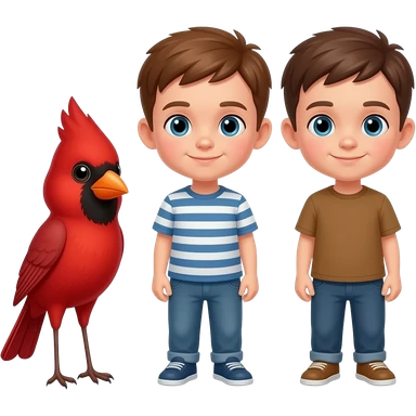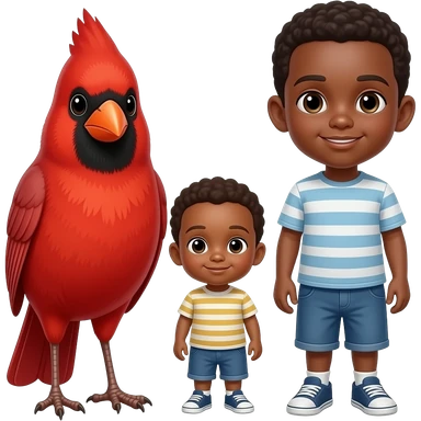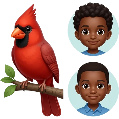 Red cardinal beside two little brown boys emoji