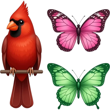 Red cardinal with a pink butterfly and green butterfly emoji
