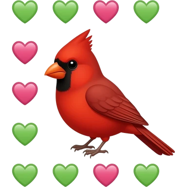 Red cardinal surrounded by pink and green hearts emoji