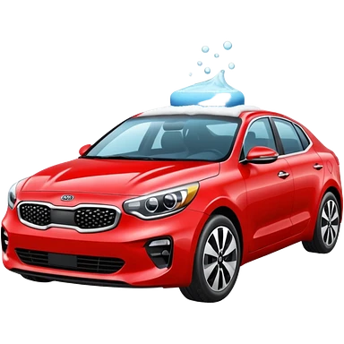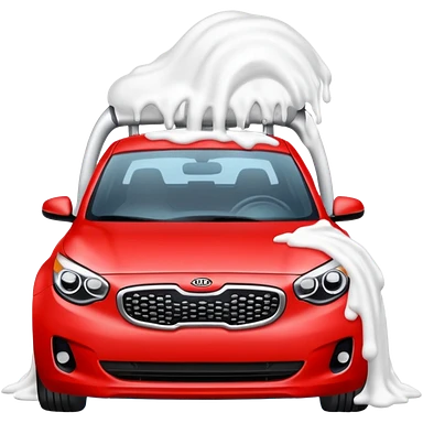 red kia car with foam with car wash shop emoji