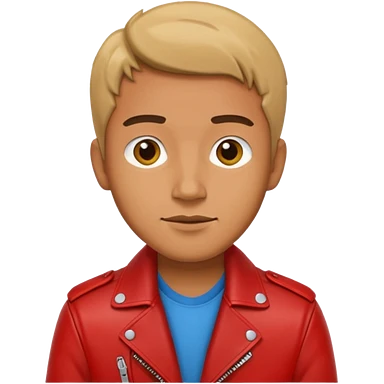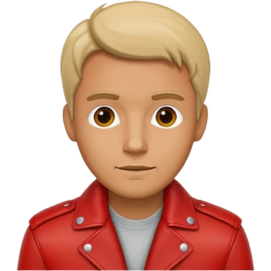 A yellow haired man wearing a red leather jacket who doesn't care about tidying up emoji