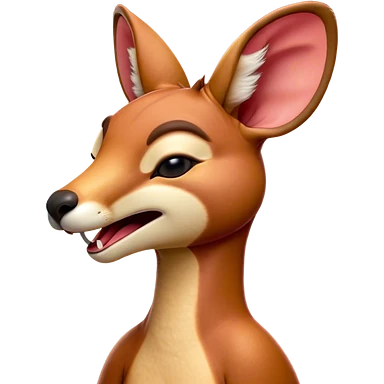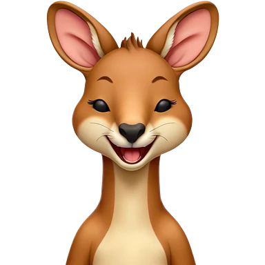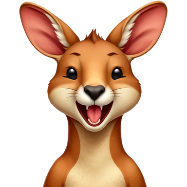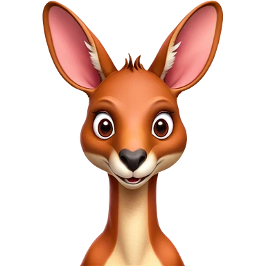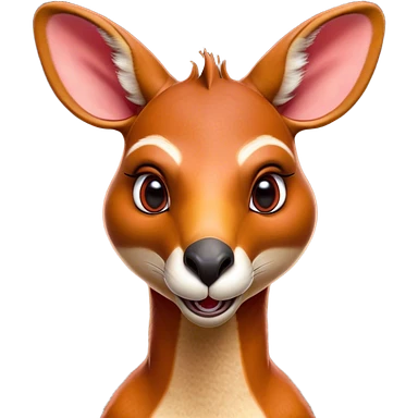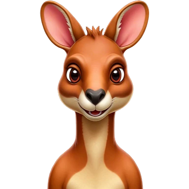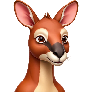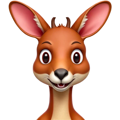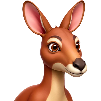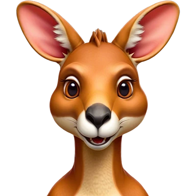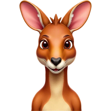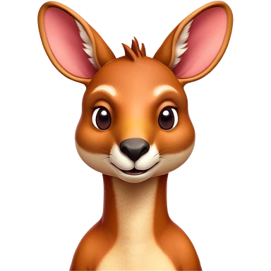 Cinematic Cute Adult Red Kangaroo Portrait Emoji, Head tilted playfully and inquisitively, showcasing a charming, robust build with soft reddish fur and a uniquely red kangaroo-like head featuring a gentle, elongated snout and rounded ears, with large, sparkling eyes full of wonder, Simplified yet irresistibly adorable features, highly detailed, glowing with a warm, friendly glow, high shine, affectionate and lively, stylized with a touch of outback whimsy, soft glowing outline, capturing the essence of a mischievous yet loving kangaroo that seems as if it could hop out of the screen into your arms! emoji