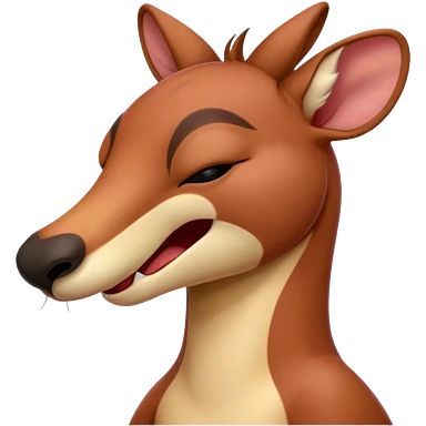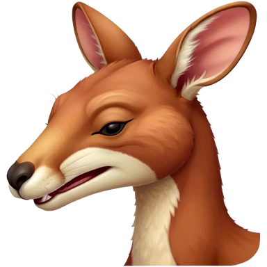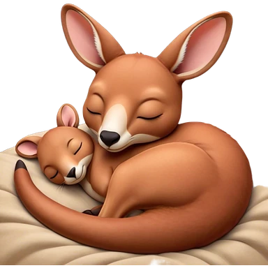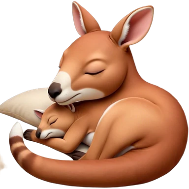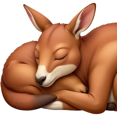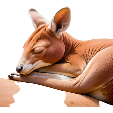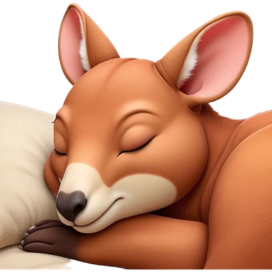 Meme-Worthy Cute Sleeping Adult Red Kangaroo Portrait Emoji, Head resting peacefully with a contented smile, showcasing a solid, reddish form with a characteristic red kangaroo-shaped head featuring a soft, elongated snout and small, relaxed ears, eyes shut in a serene, restful nap, Simplified yet adorably endearing features, highly detailed, glowing with a soft, drowsy outback light, high shine, relaxed and utterly lovable, stylized with an air of playful laziness, soft glowing outline, capturing the essence of a sleeping kangaroo that feels destined to become the next viral icon of adorable rest! emoji