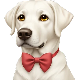 Black lab with red and pink collar holding a bouquet of yellow roses emoji