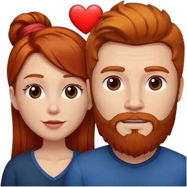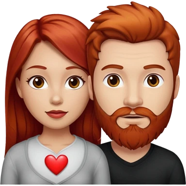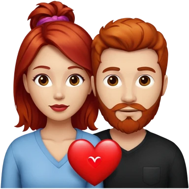 π©πΌββ€οΈβπ¨π½ Something like this, but make the guy more lighter and give the girl a bit more red hair like ginger style make the guy have dark brown hair, same with the beard and add a heart in the middle above us make the guy have darker beard and hair emoji