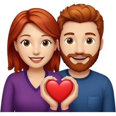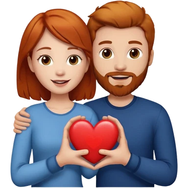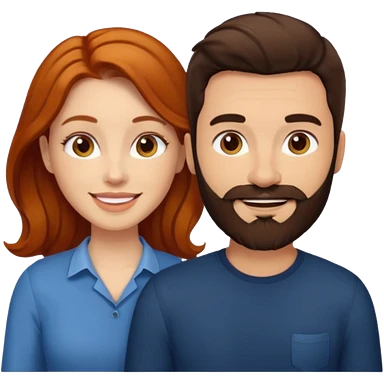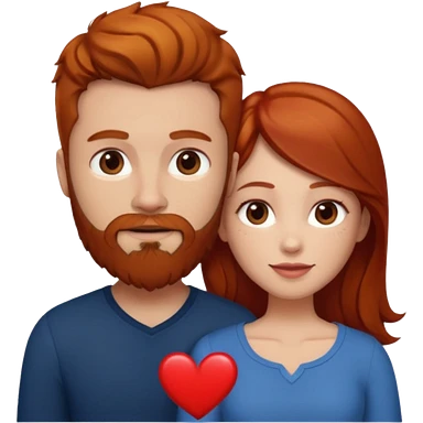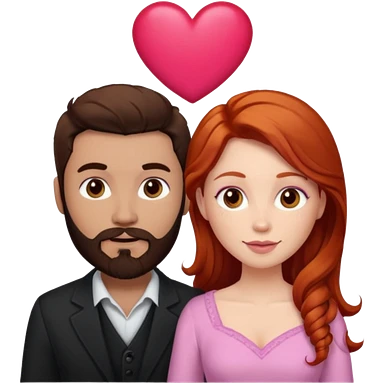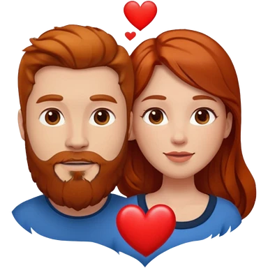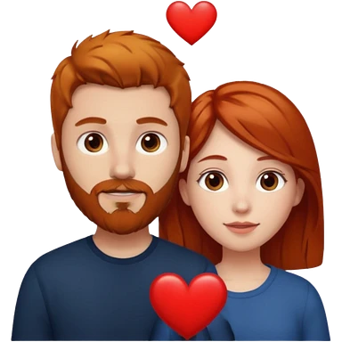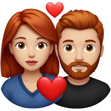π©πΌββ€οΈβπ¨π½ Something like this, but make the guy more lighter and give the girl a bit more red hair like ginger style make the guy have dark brown hair, same with the beard and add a heart in the middle above us emoji