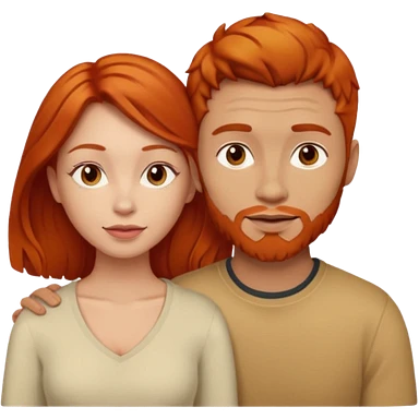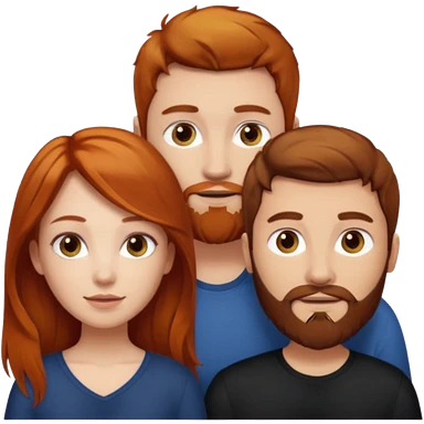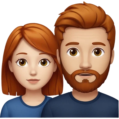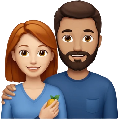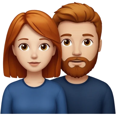 π©πΌββ€οΈβπ¨π½ Something like this, but make the guy more lighter and give the girl a bit more red hair like ginger style make the guy have dark brown hair, same with the beard and add her in the middle top emoji