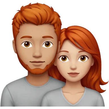 π©πΌββ€οΈβπ¨π½ Something like this, but make the guy more lighter and give the girl a bit more red hair like ginger style make the guy have dark brown hair, same with the beard and add a heart in the middle above us make the guy have brunette beard and hair emoji