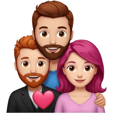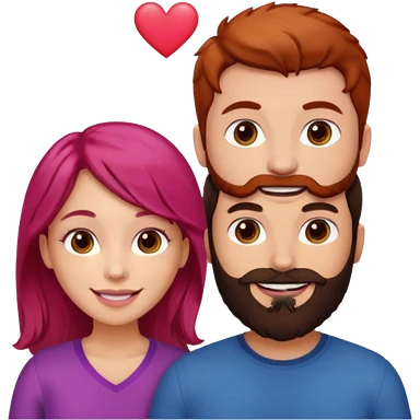 π©πΌββ€οΈβπ¨π½ Something like this, but make the guy more lighter and give the girl a bit more red hair like ginger style make the guy have dark brown hair, same with the beard and add her in the middle top donβt forget the pink heart in the middle above us emoji