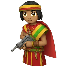 An Inca man, neck-length black hair, wearing a Red headband and wearing a red poncho (with yellow, green and red lines) and holding a pistol emoji