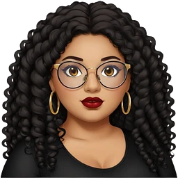 teen big plus size, latina, darker tan skin, gold earring, long black curly hair, baddie,pretty, makeup, dark red lipgloss, black eyeliner, long hair, black top, black glasses emoji