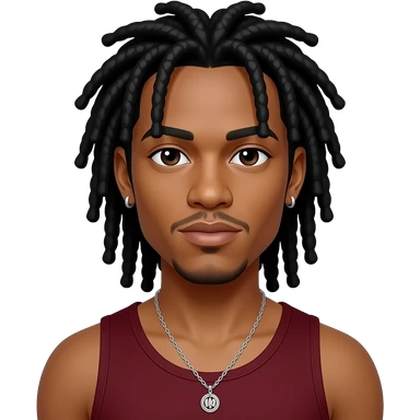 Omarion from B2K with dark brown eyes, long black dreads, dark red tank top, necklace and earrings emoji