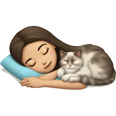 brunette white girl sleeping with her fluffy siamese cat emoji