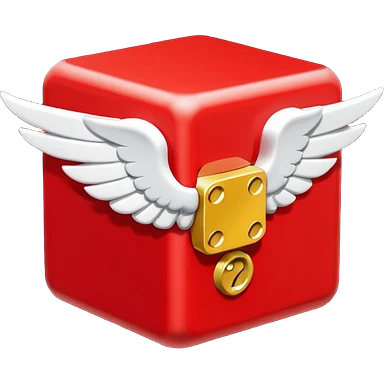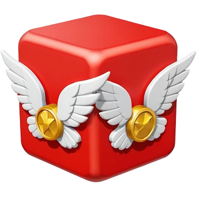red being the block itself while the white parts are the question marks which are used in all of the lucky blocks, corners, and face. It has 2 white wings on each side like the other Lucky Blocks. It is doing emoticon: the :3 face. emoji