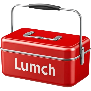 red lunch box with the word lunch on it emoji