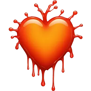 Heart with fireworks in background exploding out of heart with red orange yellow green blue purple emoji