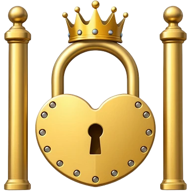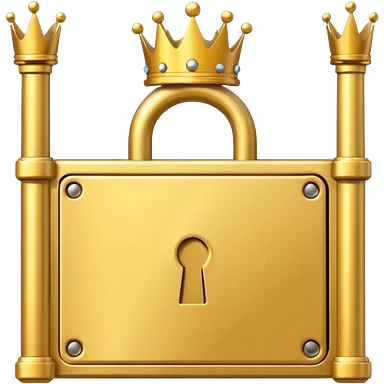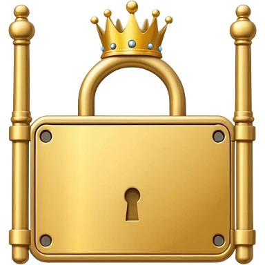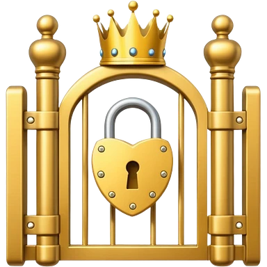 Golden padlock with a crown icon blocking a gate, flat UI illustration premium style. emoji