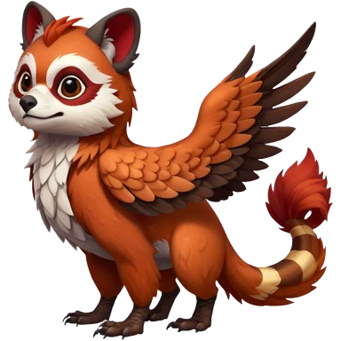 Red-Panda-Gryphon-Griffin-Griff-Avian-hybrid, full body, cute, realism, hyper-realistic emoji