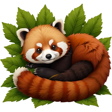 incredible cite ultra furry, hyperrealistic, red panda, napping curled up on a bed of different brown and green dried leaves, still life, isolated, must have a transparent background, 4k. Must not be poor quailty, must be high resolution, must not be blurry, no emoji faces, no emoji icons, dpi 300 emoji