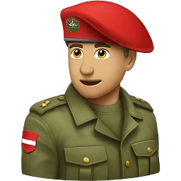 red parachutist beret emojis with army multi cam uniform emoji | AI Emoji Generator