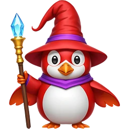 red Penguin Wizard, with youtube logo on the top of his stick emoji