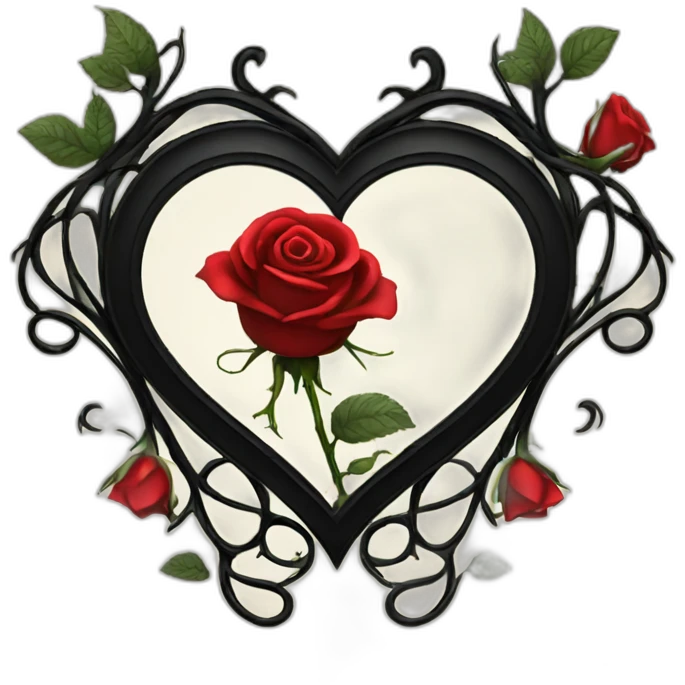red roses on heart shaped black vine frame goth style emoji | AI Emoji Generator