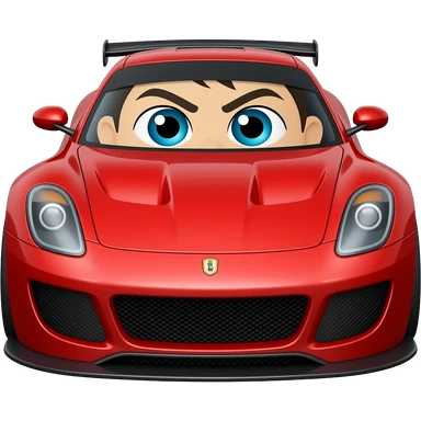 Red race car with human face emoji