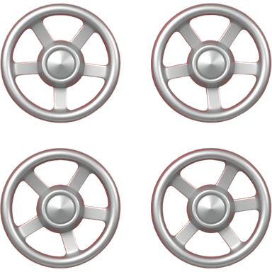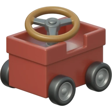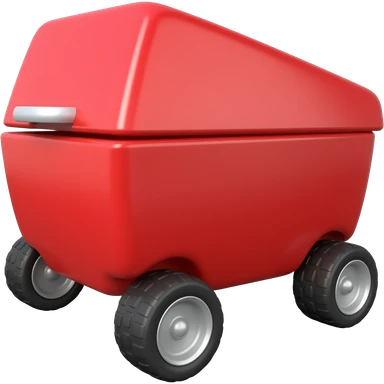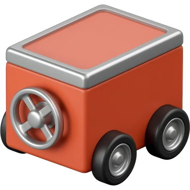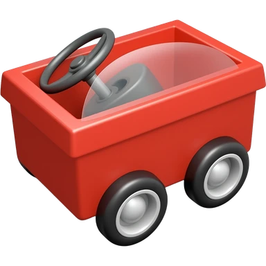 Red box with 4 small wheels with stearing wheels emoji