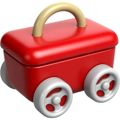 Red box with 4 small wheels with sterring wheels emoji