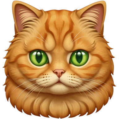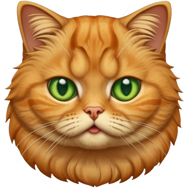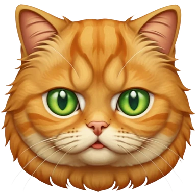 Red Scottish Fold cat. He has large round eyes, large pupils and characteristic lop-eared ears. He looks straight into the camera, creating an impression of surprise. The cat's fur is soft and fluffy, and the expression on his face is very cute.emoji