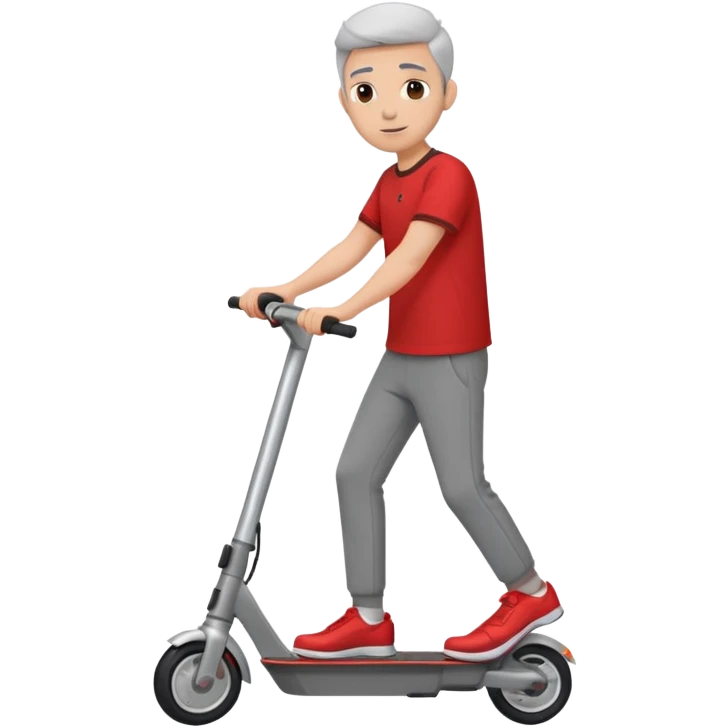Red shirt, grey pants, on an electric scooter emoji | AI Emoji Generator