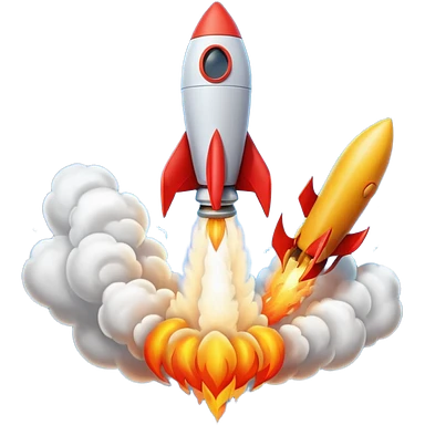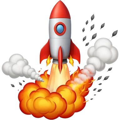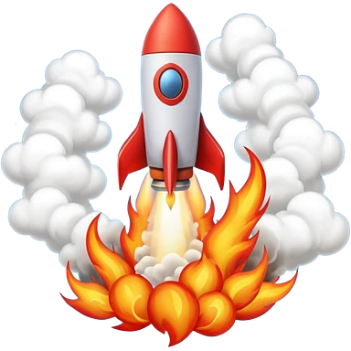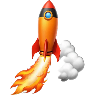 A colorful cartoon space rocket with flames shooting out, ready for liftoff emoji