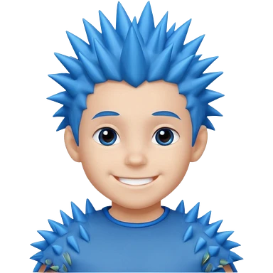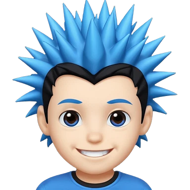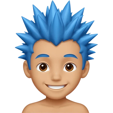 a white kid with cyan blue spiky hair with a red hat and a white shirt with a red circle in the middle and in the circle theres a red tilted line in it emoji