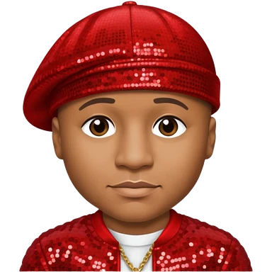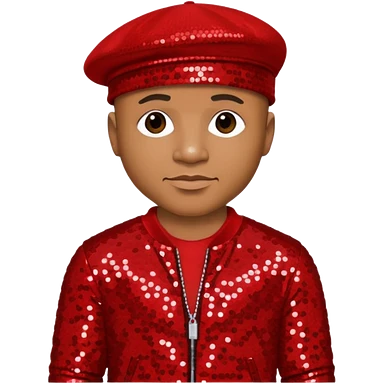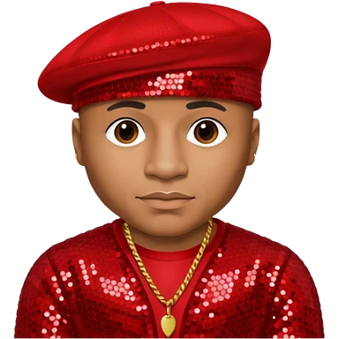 LL Cool J with red sequin jacket, shirtless with necklace emoji