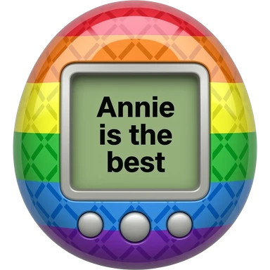 rainbow tamagotchi with pattern outside that says Annie is the best on the screen in black letters and no words on the outside top part emoji