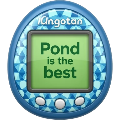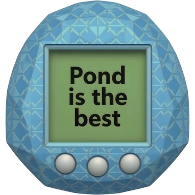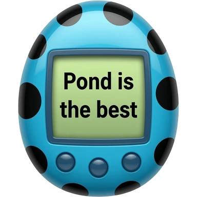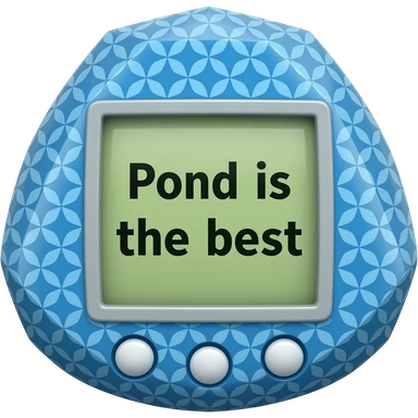 blue tamagotchi with dots on outside that says Pond is the best on the screen in black letters and no words on the outside top part emoji