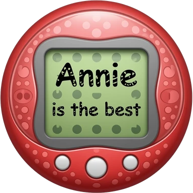 red tamagotchi with pattern outside that says Annie is the best on the screen in black letters and no words on the outside top part emoji | AI Emoji Generator
